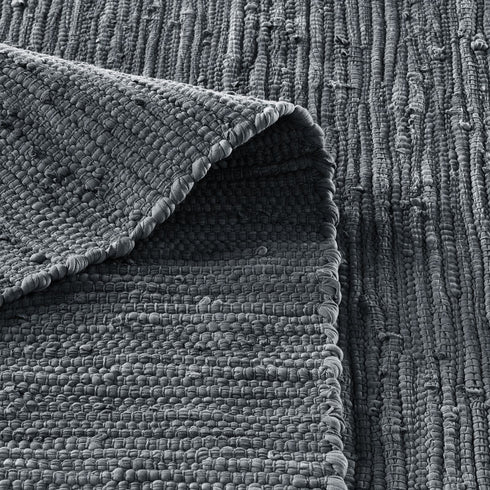 - Flicken-Teppich 100% Baumwolle | Waschbarer Fleckerl mit Fransen | Anthrazit