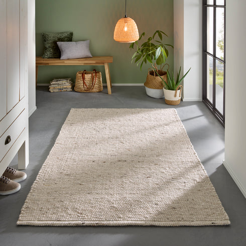 - Wollteppich Gewalkt | Reine Schur-Wolle Handweb Teppich im Skandinavischen Design | Natur